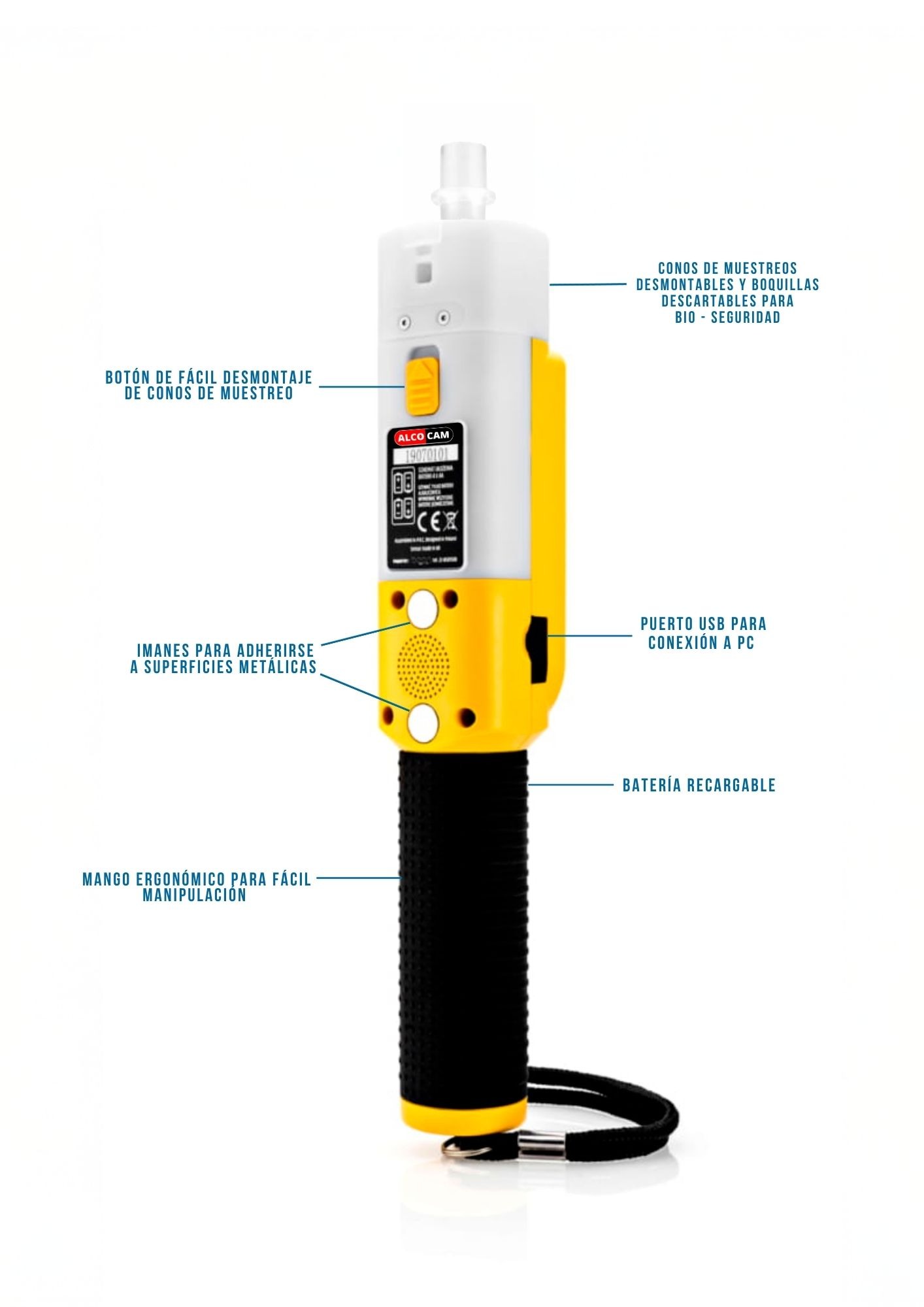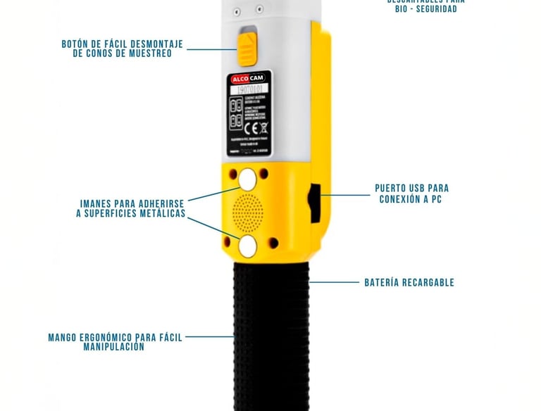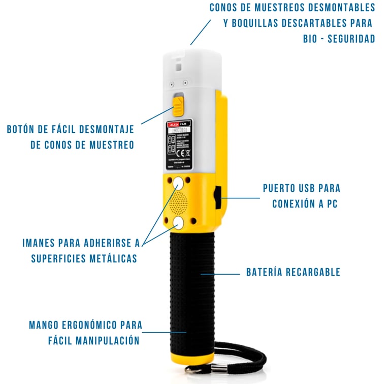 No requieres ningún equipo adicional, TOMA LA MUESTRA, REGISTRA LA FOTO, EXPORTA EL RESULTADO A LA COMPUTADORA, todo esto y más con el ALCOCAM