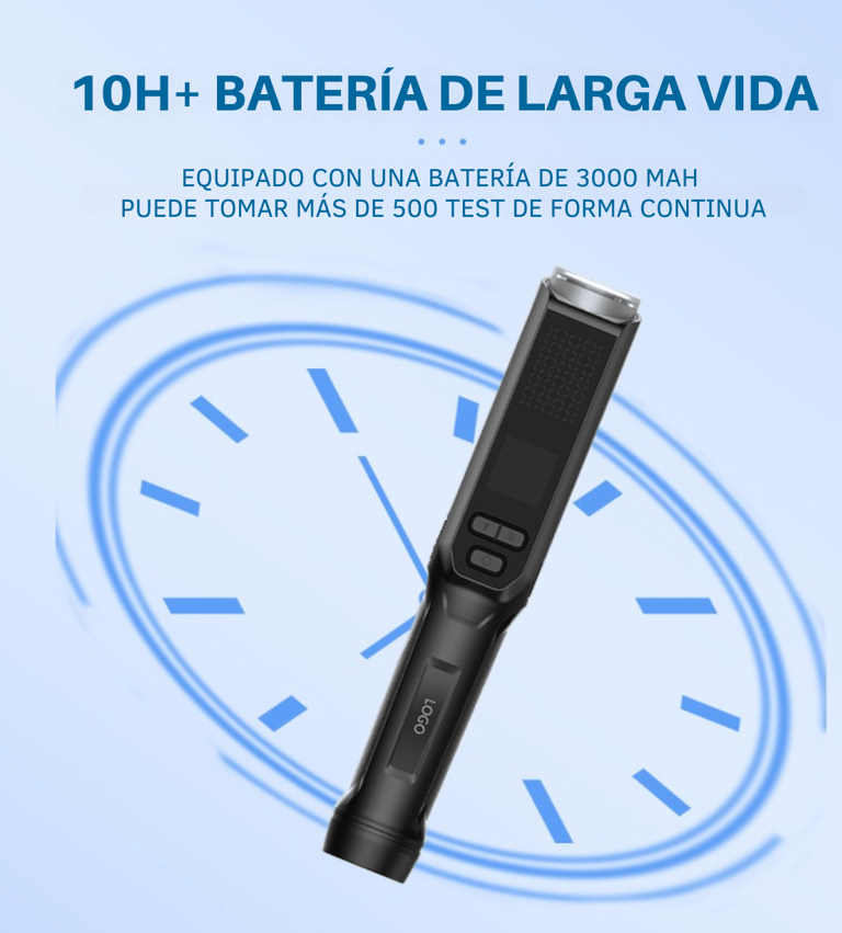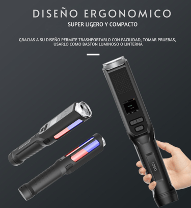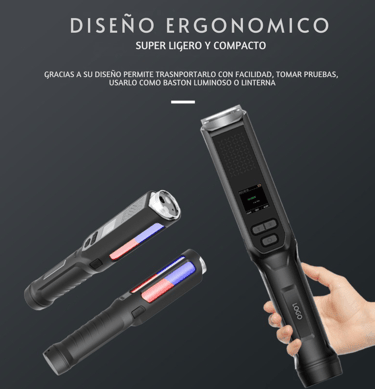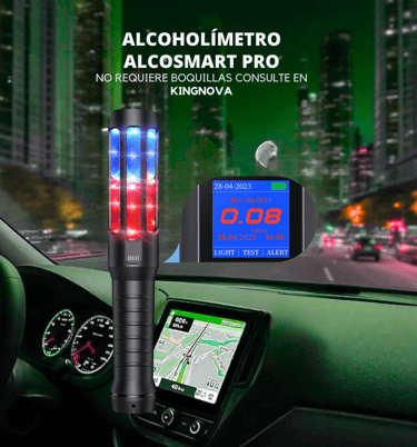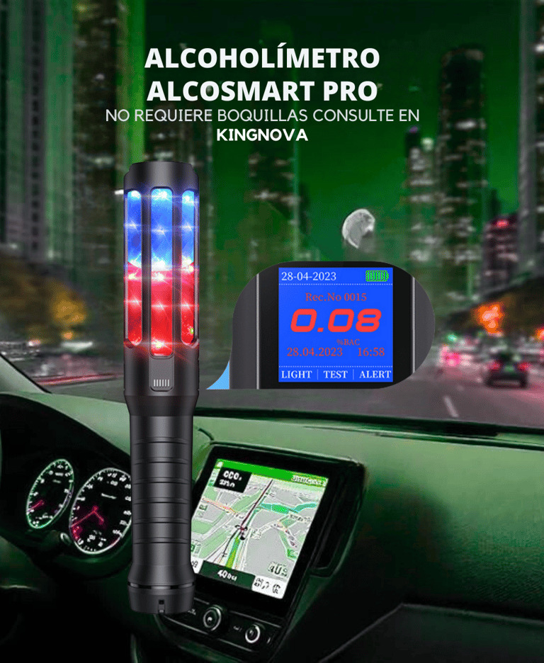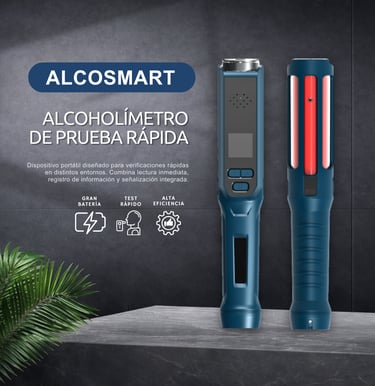 El alcoholímetro AlcoSmart PRO es un dispositivo portátil y profesional diseñado para medir la concentración de alcohol en el aliento. Emplea un sensor electroquímico (celda de combustible) para ofrecer resultados cuantitativos y cualitativos con buena precisión. Al no requerir boquillas, funciona tanto en modo activo como pasivo, lo cual facilita su uso en escenarios de control de alcoholemia en empresas, transporte, minería, vigilancia vial, entre otros. Integra memoria para almacenar miles de resultados con fecha y hora, alarmas de voz, luces de señalización, y funciones complementarias como linterna, bastón luminoso, imán y silbato policial, lo que lo hace versátil para operativos en campo.