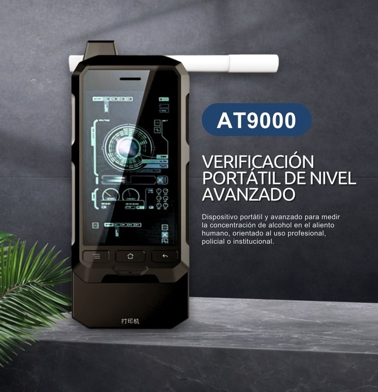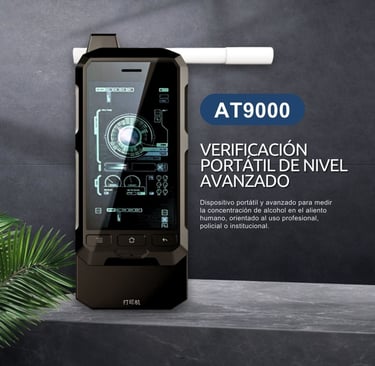 El alcoholímetro AT9000 es un dispositivo portátil y avanzado para medir la concentración de alcohol en el aliento humano, orientado al uso profesional, policial o institucional.