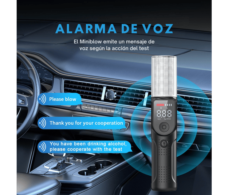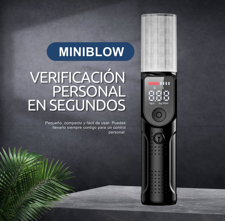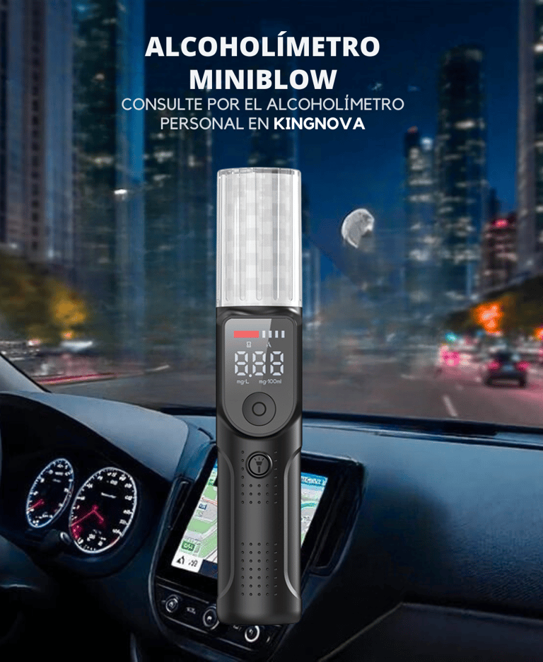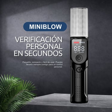 El alcoholímetro personal MiniBlow tiene pantalla digital, es portátil, fácil de usar y proporciona lecturas rápidas. No requiere boquilla para su funcionamiento por lo que el usuario tiene la comodidad de realizar las pruebas de manera higiénica y sumamente económica.