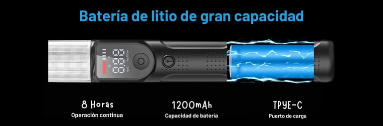 Alimentación: Batería interna recargable de litio 1,200 mAh