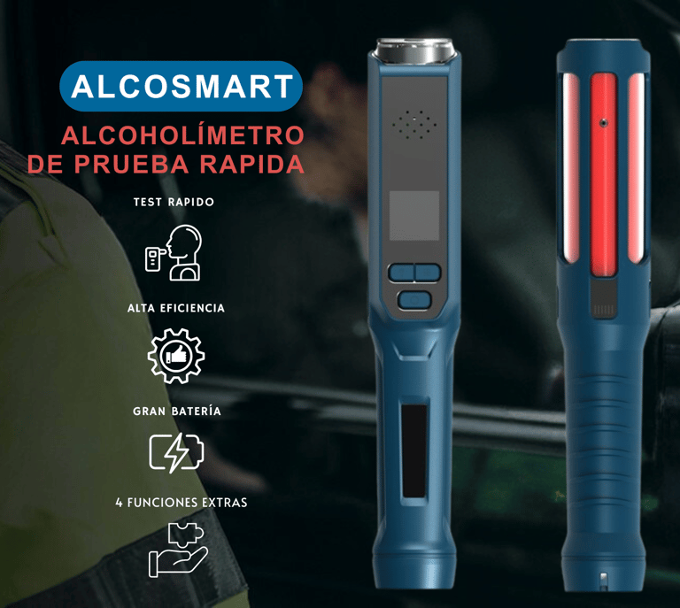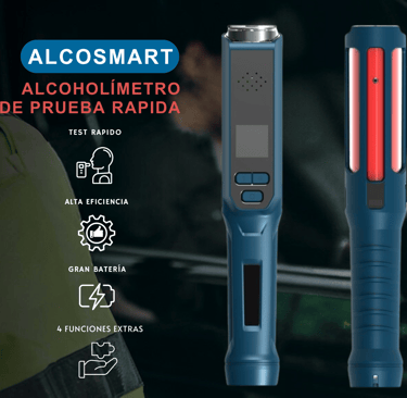 El AlcoSmart es un dispositivo portátil para la detección y cuantificación de alcohol en el aliento humano. Opera mediante un sensor semiconductor, lo que le permite ofrecer mediciones confiables y precisas. Puede funcionar en modo activo (con la cooperación del individuo) o modo pasivo (sin necesidad de soplar directamente), facilitando su uso en diferentes escenarios de control de alcoholemia. Integra memoria para guardar los resultados con fecha y hora, alertas visuales y sonoras ante niveles superiores permitidos, y funciones auxiliares (como luz, linterna u otros accesorios) que lo hacen idóneo para operativos en campo, seguridad empresarial, transporte o vigilancia vial.